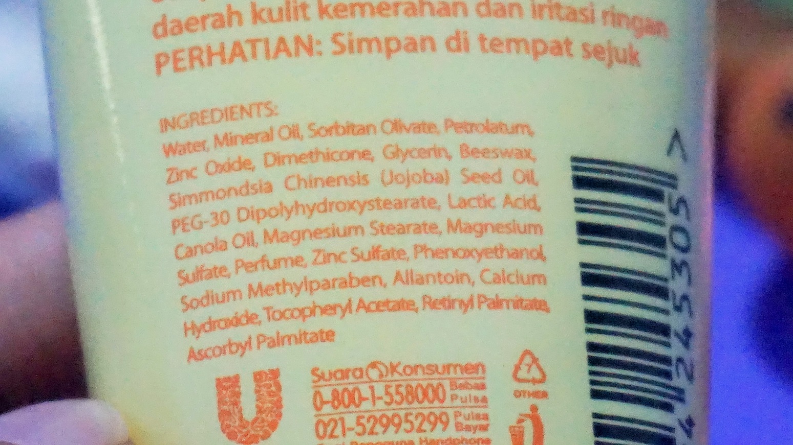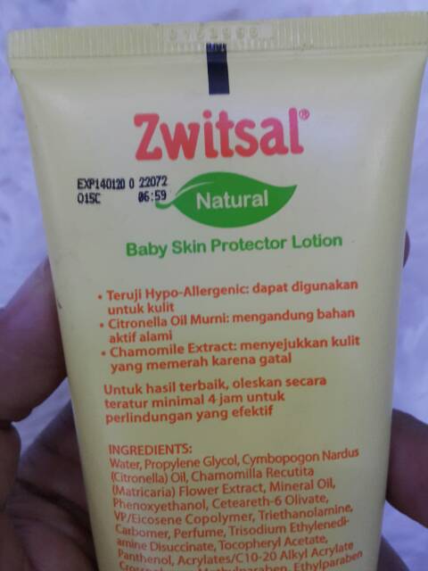 Zwitsal baby cream with zinc ingredients.